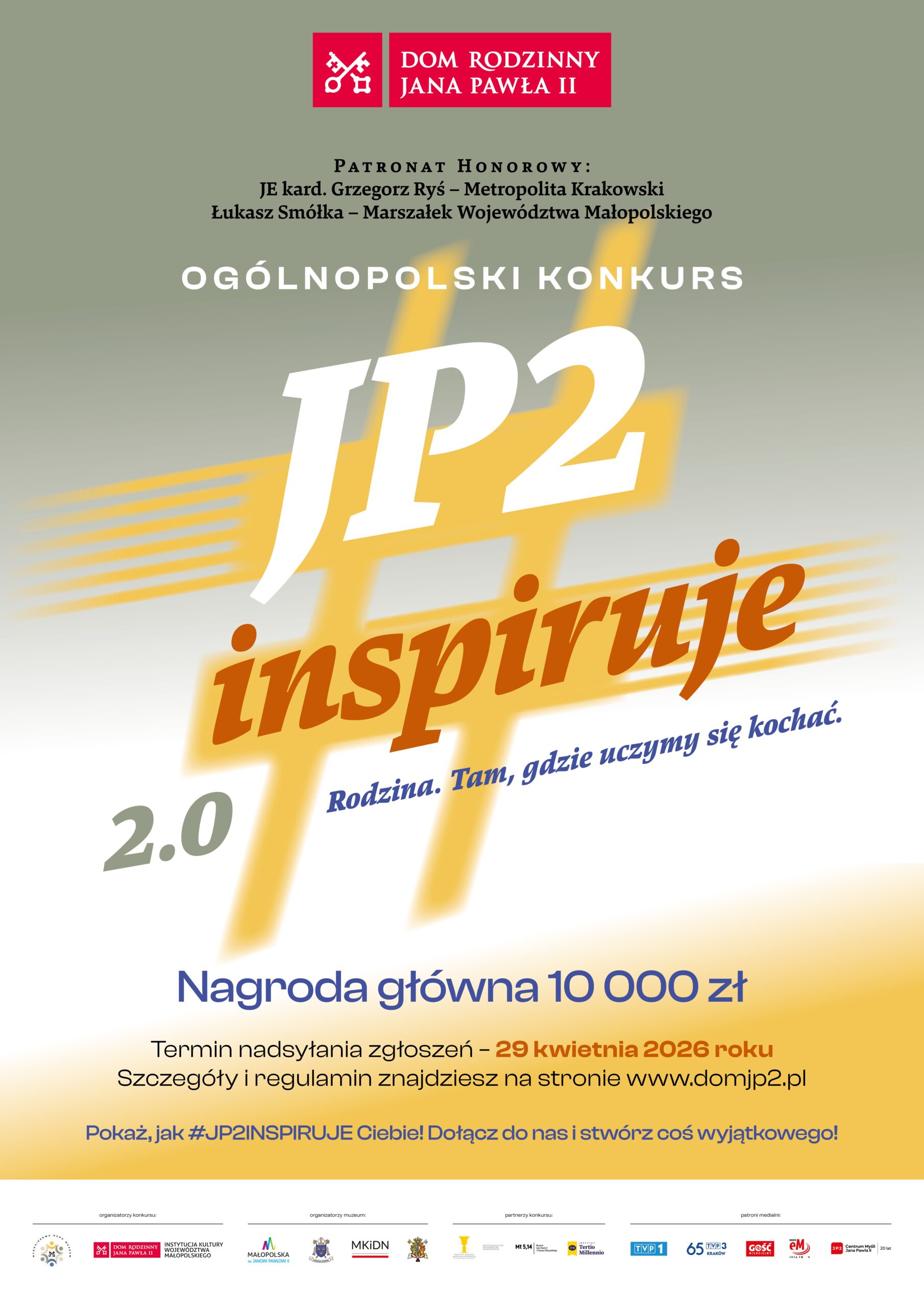 Konkurs odbywa się pod honorowym patronatem Marszałka Województwa Małopolskiego oraz Metropolity Krakowskiego. Partnerem konkursu jest Mt 5,14 | Muzeum Jana Pawła II i Prymasa Wyszyńskiego.