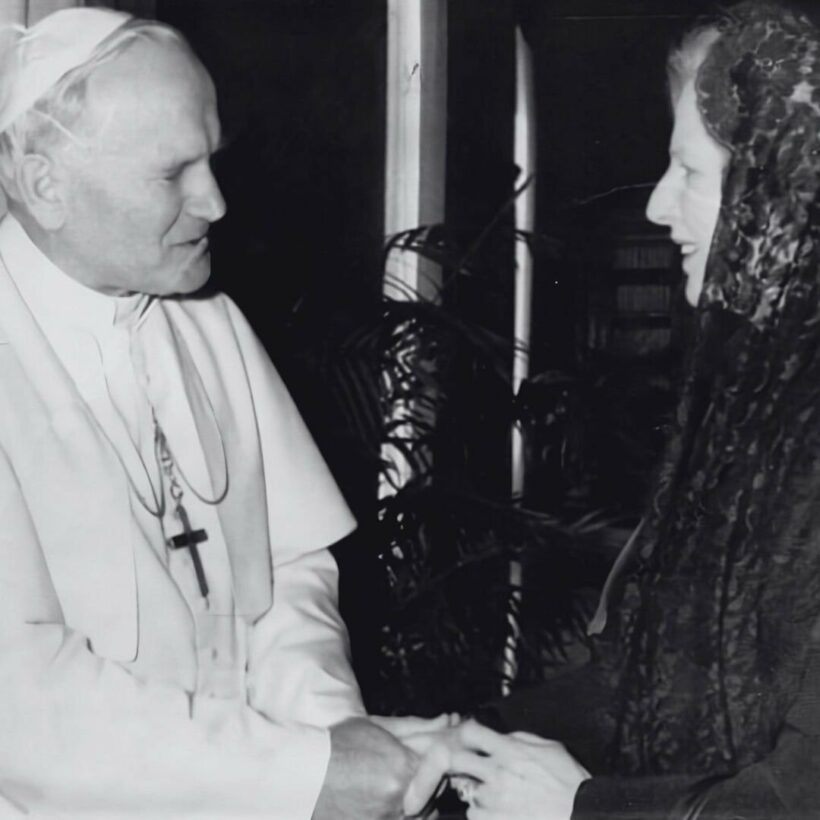 Była zwolenniczką przemian, które zapoczątkowała Solidarność. W 1988 r. złożyła oficjalną wizytę w Polsce, spotkała się także z przedstawicielami opozycji. Po objęciu władzy przez Tadeusza Mazowieckiego wystosowała apel do państw zachodnich o udzielenie Polsce znaczącej pomocy.