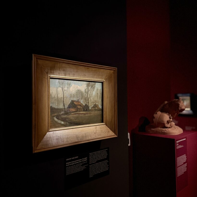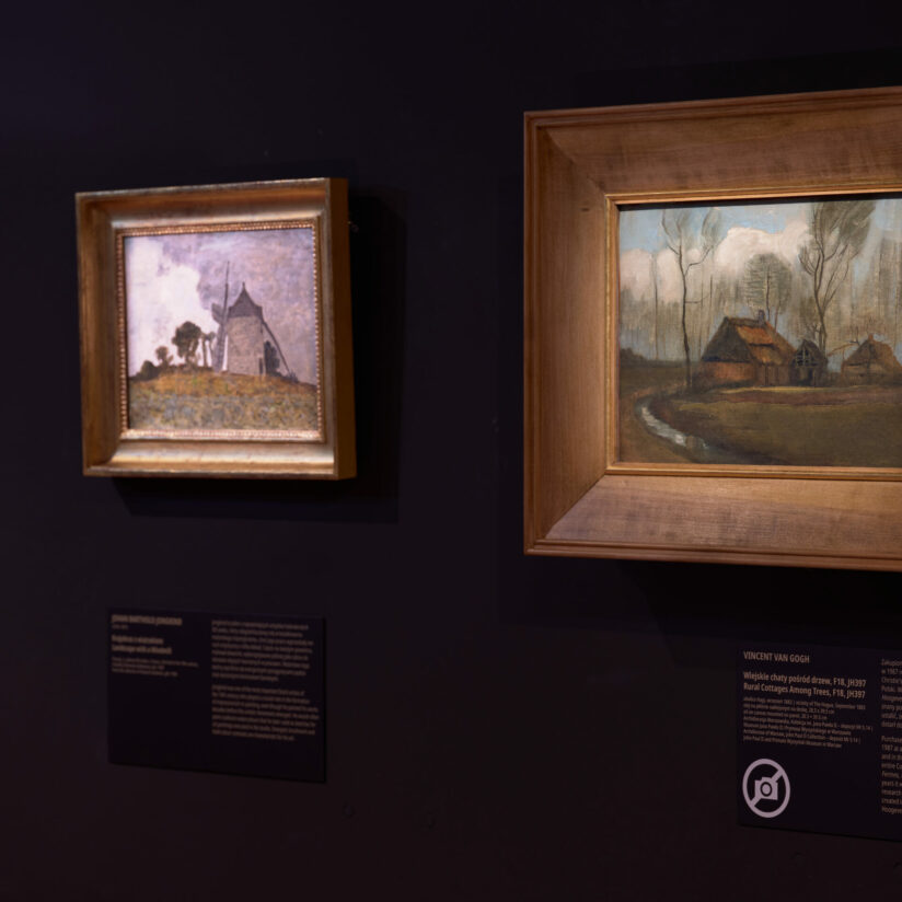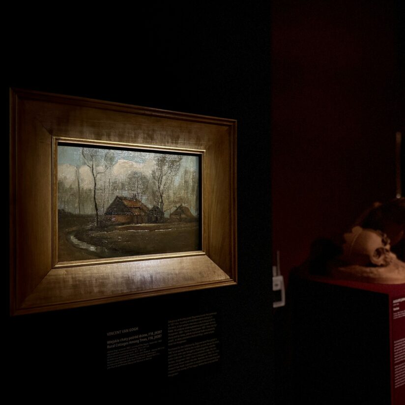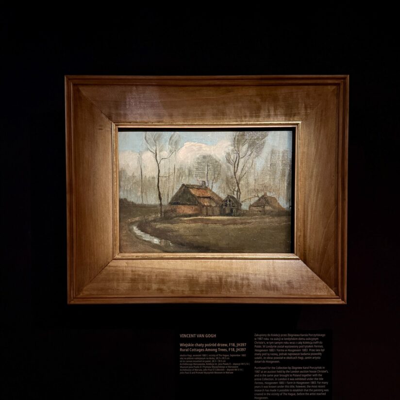 Wiejskie chaty pośród drzew pochodzą z pracowni Nuenen, niedaleko holenderskiego Eindhoven. Wiadomo, że Vincent van Gogh namalował je w 1883 r., czyli mniej więcej 5 lat przed swoimi najsłynniejszymi dziełami – takimi jak Słoneczniki czy Gwiaździsta noc. Obraz przez lata zmieniał miejsce przechowywania i właścicieli. Wkrótce po powstaniu przechodził z rąk do rąk a często przypadkowi posiadacze nie zdawali sobie sprawy z jego artystycznej, historycznej i finansowej wartości. Gdy na początku XX w. prace van Gogha zyskały rozgłos i znacznie zwiększyły wartość, Wiejskie chaty pośród drzew znajdowały się już w rękach kolekcjonerów – najpierw w Belgii, a potem w Szwajcarii. W latach 80. dzieło ostatecznie trafiło do Polski, a od 2020 r. pozostaje w depozycie Mt 5,14 | Muzeum Jana Pawła II i Stefana Wyszyńskiego, które zaprezentowało obraz w 2024 r. na głośnej wystawie Van Gogh. Historie jednego obrazu. Przez pewien czas pokazywany także w Wadowicach, obecnie obraz zostanie zaprezentowany zwiedzającym Muzeum Narodowe w Krakowie. Będzie tam pokazywany do końca 2026 r.: „Zależy nam, żeby ten niezwykły obraz van Gogha zobaczyło jak najwięcej osób”, mówi Piotr Dmitrowicz, dyrektor Mt 5,14 | Muzeum Jana Pawła II i Prymasa Wyszyńskiego.