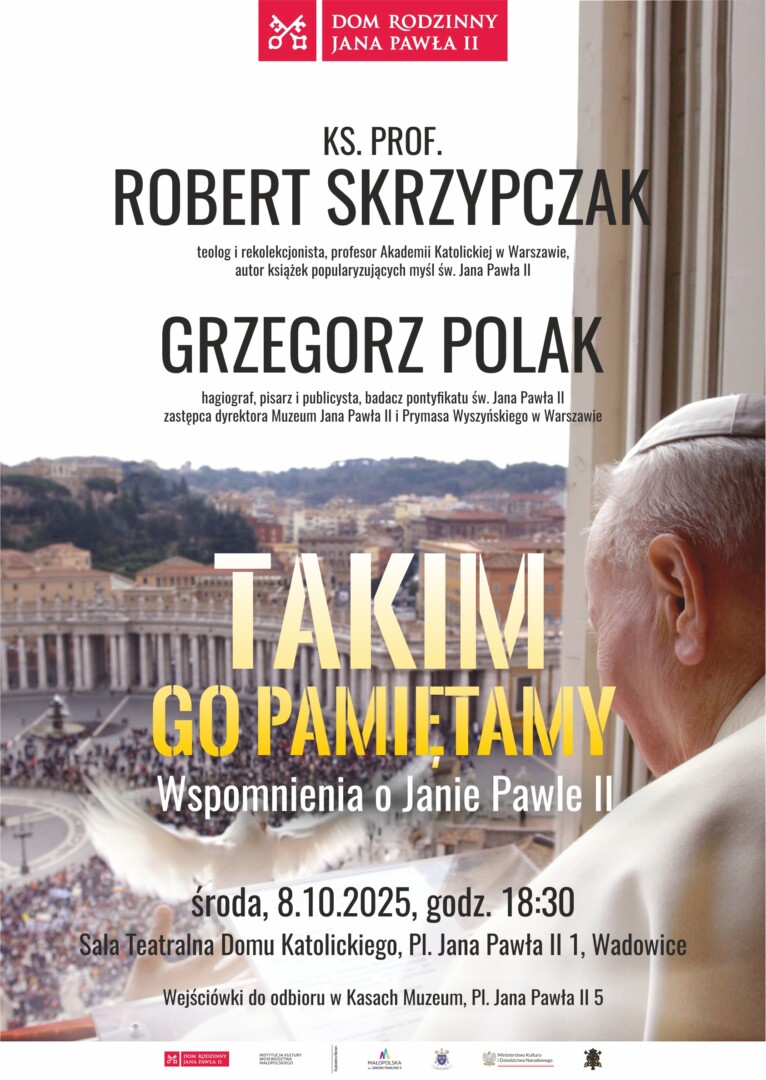8.10 – spotkanie Takim Go pamiętamy. Wspomnienia o Janie Pawle II (Domu Katolicki, Wadowice)