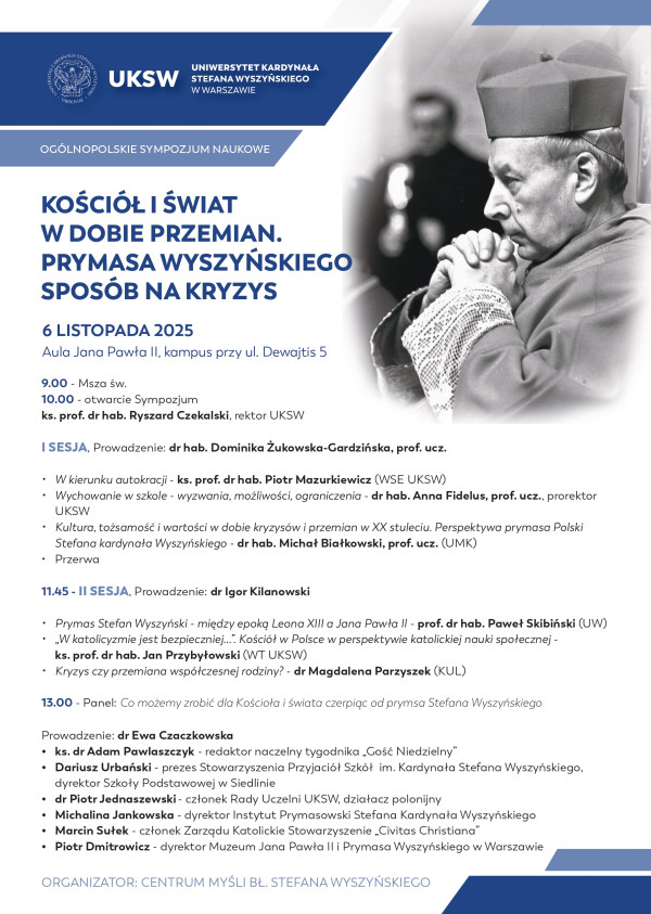 Zaproszeni prelegenci podejmą próbę reinterpretacji myśli Prymasa Tysiąclecia w kontekście współczesnych wyzwań: edukacyjnych, kulturowych, rodzinnych i tożsamościowych. Jego duchowa wizja stanie się punktem wyjścia do pogłębionej debaty akademickiej. W centrum refleksji znajdzie się nauczanie kard. Stefana Wyszyńskiego oraz jego decyzje, podejmowane w jednym z najbardziej wymagających momentów dla Kościoła katolickiego i polskiego społeczeństwa.
