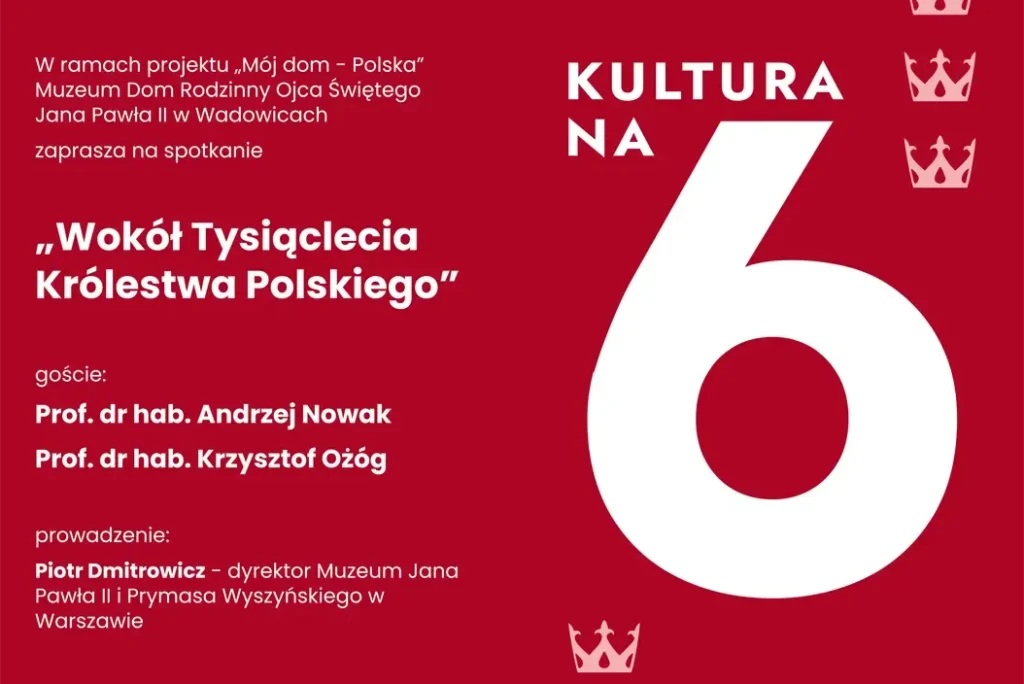Głównym tematem dyskusji będzie jubileusz 1000-lecia Królestwa Polskiego. Wydarzenie stanie się okazją do refleksji nad znaczeniem koronacji Bolesława Chrobrego w 1025 r. oraz jej konsekwencjami dla kształtowania polskiej państwowości. Historycy porozmawiają także o tym, jak wydarzenia sprzed wieków wpływają na dzisiejsze postawy obywatelskie oraz jakie miejsce w tej refleksji zajmuje nauczanie Jana Pawła II, podkreślającego rolę patriotyzmu i wychowania historycznego.